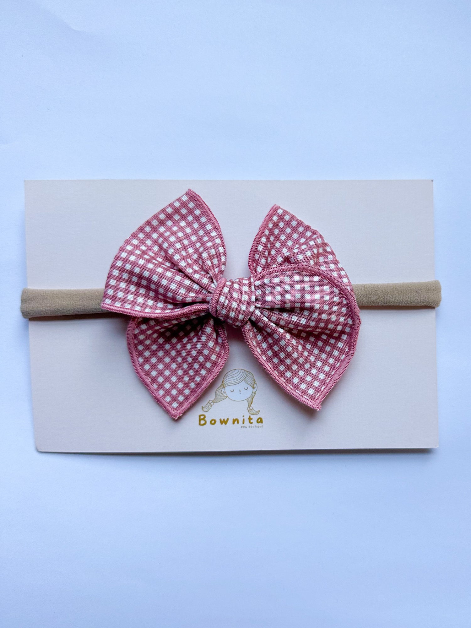 Baby Mauve Pink Gingham Baby Headband